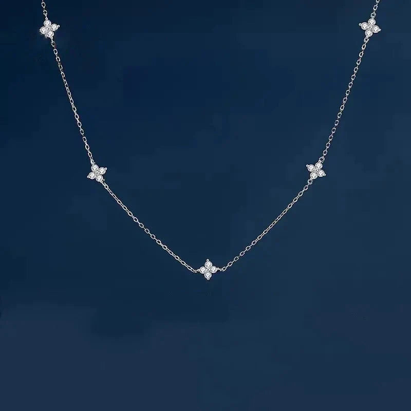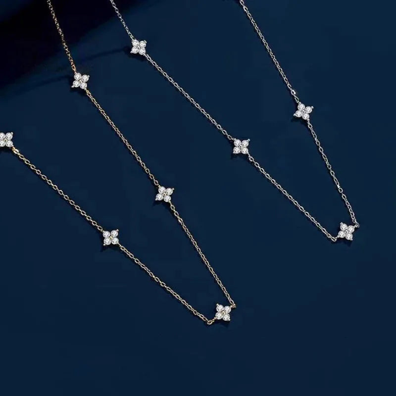 Collar de estilo clásico con diseño de plantas y flores, con detalles de circonio que aportan un brillo delicado y sofisticado. Disponible en tonos dorado y plateado, combina elegancia y modernidad en una pieza versátil.