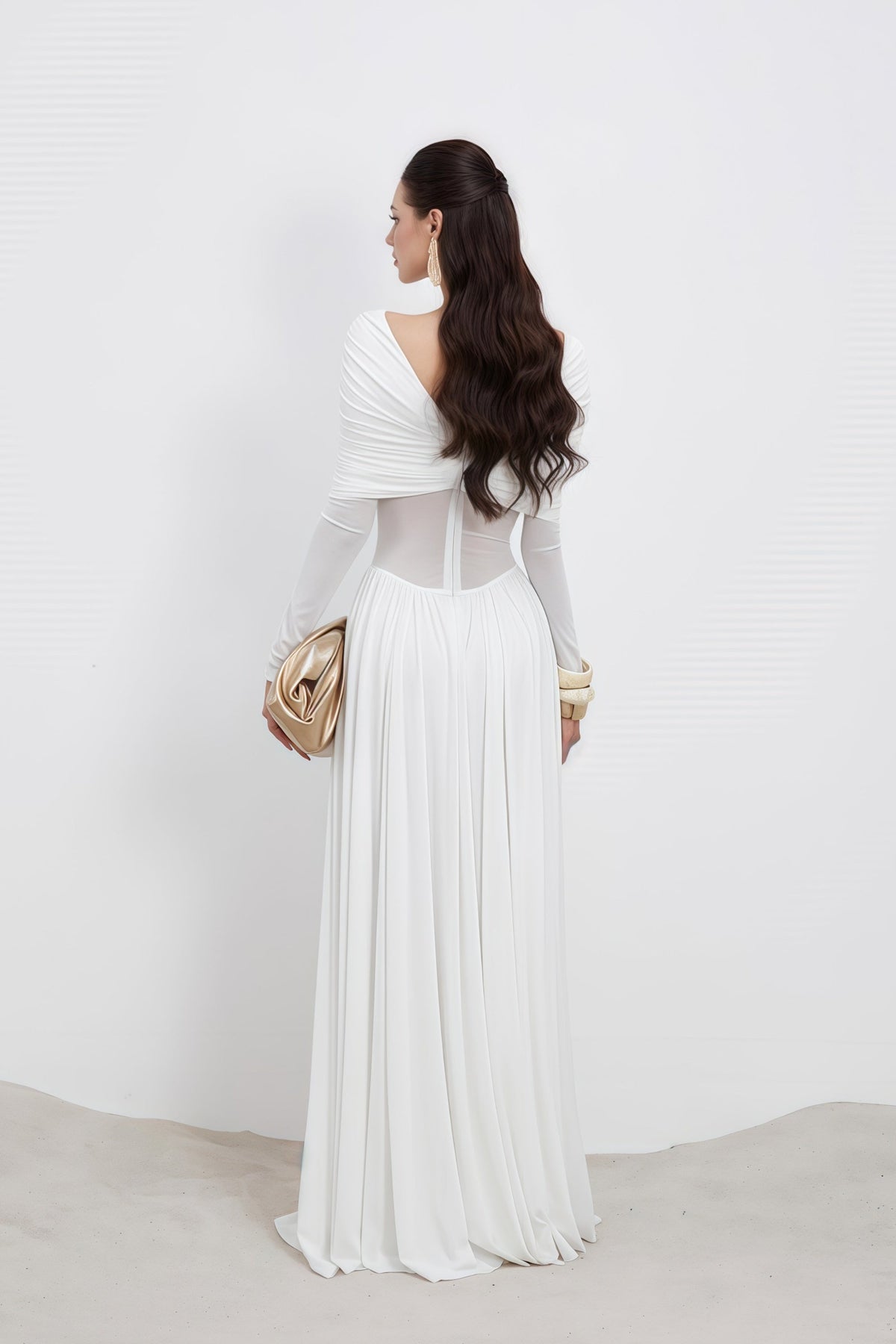 La falda plisada con pliegues drapeados crea movimiento y feminidad, mientras el largo maxi ofrece un efecto sofisticado y fluido — perfecto para ocasiones especiales.